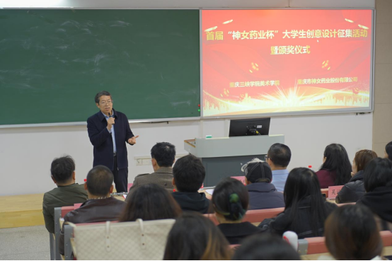 最后由副校长祁俊生教授讲话,祁校长代表学校对重庆市神女药业股份有限公司为我校学子们提供绽放才华、施展创意的广阔舞台表示感谢,并希望校、企双方进一步推动校企合作的深度与广度,在中药材种植、中药材深加工、智慧化、中医药文化推广、包装设计等领域深化合作,发挥我校学科资源优势,以服务地方经济社会发展,共同携手在更高起点、更高层次、更高目标上深化产学研用的合作,实现企业发展、学校人才培养、科学研究共同发展,共谱校企合作新篇章。