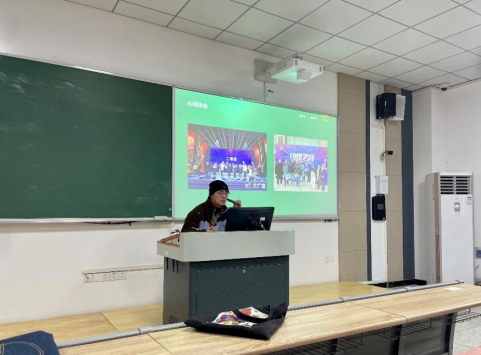紧接着,本次大广赛全国二等奖、重庆赛区一等奖获得者李郑强同学分享了他的获奖作品和参赛心得。首先向同学们分享了获奖作品的整个创作过程,从命题解读、创意构思、作品修改到最后完成。然后,他针对参加本次大广赛的比赛经历,向同学们讲述了他对于大广赛的感悟和体会并赢得了在场师生的阵阵掌声。