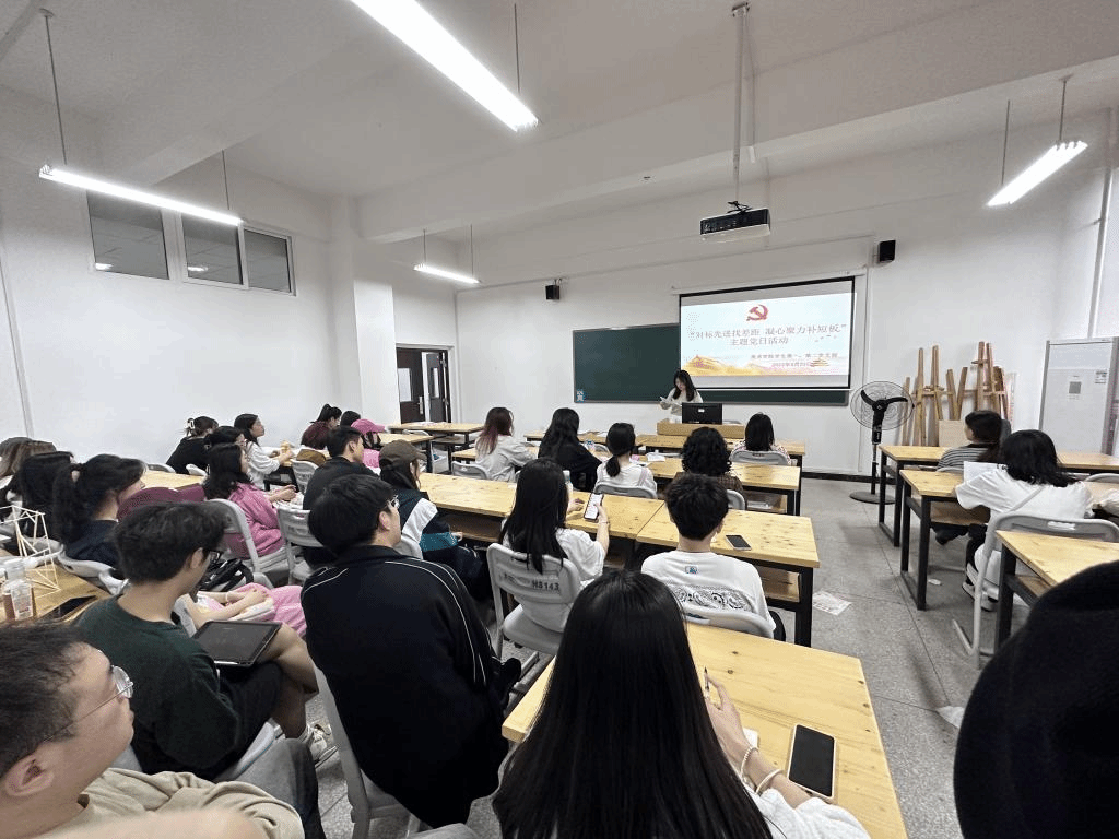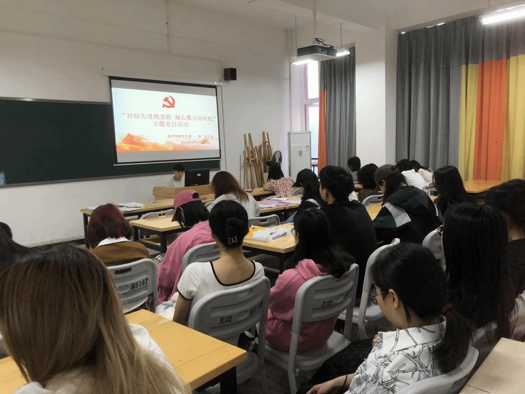 2023年4月21日下午,太阳成tyc7111cc学生第一、第二党支部在博学楼5B303-1开展“对标先进找差距,凝心聚力补短板”主题党日活动,在校全体党员参加会议,会议由学生第二党支部书记龙婷婷主持。