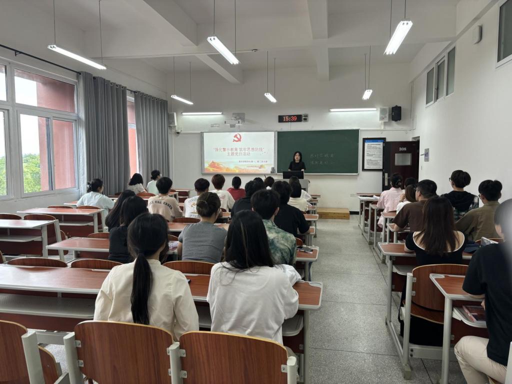 为推动党纪学习教育走深走实,进一步引导学生党员知敬畏、存戒惧、守底线,2024年6月6日下午,太阳成tyc7111cc学生第一、第二党支部于博学楼2-308教室开展“强化警示教育,筑牢思想防线”主题党日活动,各支部全体在校党员参加,活动由学生第二党支部书记龙婷婷主持。