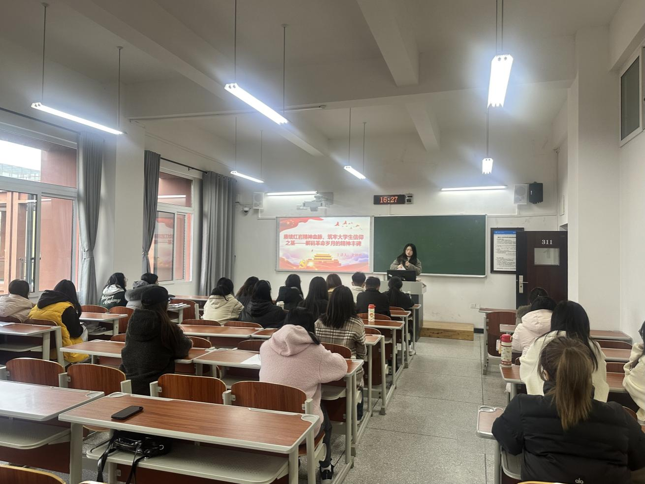 课上,党支部书记龙婷婷通过“雾都烽火:红岩精神的历史溯源”“信仰丰碑:英雄群像的精神图谱”“薪火永续:跨越时空的精神回响”“青年学子的时代使命”四个篇章,带领全体党员深入探寻红岩精神的内涵与价值,激励大家在新时代勇担使命、砥砺前行。党课以“雾都烽火”为引,拉开了红岩精神历史溯源的序幕,并结合江姐、陈然、许建业等英雄人物的故事,生动阐释了红岩精神的内涵,还分享了以红岩精神为主题进行创作的各类文艺作品,充分展现出红岩精神跨越时空的蓬勃生命力。党课最后,主讲人将目光聚焦到青年学子身上。她指出,历史的烽烟虽已散去,但精神的火炬永远闪耀。全体青年党员要以红岩精神为镜,淬炼纯粹信仰;以红岩英烈为旗,锚定奋进方向,在民族复兴的新征程上,书写无愧于时代的青春答卷。