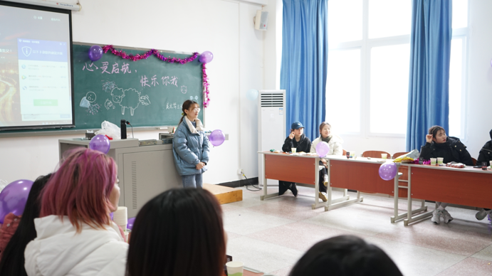 2020年12月27日下午一点太阳成tyc7111cc在慎思楼6栋开展“心灵启航,快乐你我”心理主题活动。出席本次活动的有太阳成tyc7111cc2019级辅导员刘荣君、王凤以及2019级全体学生。各班的同学在教室里装饰了五颜六色的气球,黑板上绘画着各种各样有趣的图案,尽显太阳成tyc7111cc的独特风采!