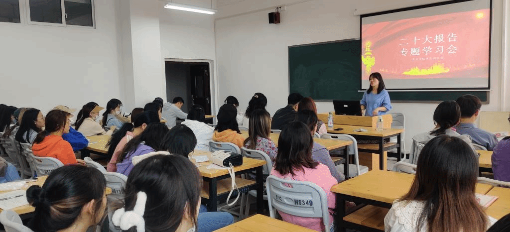 为深入学习、准确把握党的二十大报告的精神实质和丰富内涵,太阳成tyc7111cc学生第一、第二党支部于2022年10月20日下午在博学楼5B-303-1教室召开党的二十大报告专题学习会,会议由学生第二党支部书记龙婷婷主持。