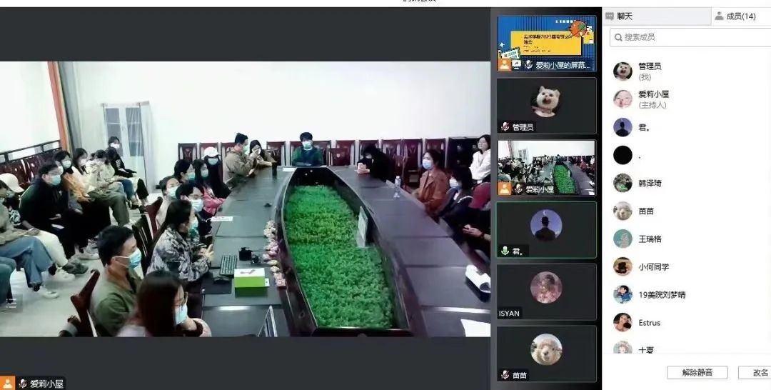 第二个环节为上岸学长学姐经验分享。八位在读研究生依次为大家分享了自己的考研经历和经验。其中考取贵州大学、陕西科技大学的22届视觉传达设计专业武叶子、黄怡卓同学分别就专业课复习的注意事项、冲刺阶段时间分配和必刷资料等做了详细的介绍;考取重庆工商大学的22届环境设计专业李思町同学从备考、英语基础巩固、科研等多方面耐心讲解;学院21级在读研究生盛悦、李基瑶、孟诗茹同学主要强调了适合自身特点复习的重要性;21级研究生陈鑫华、杜姗姗则讲述要理性选择备考院校,认真制定备考规划,以及复试调剂如何准备。