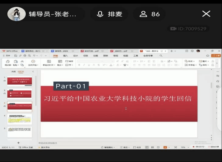 20级同学们在辅导员张乐的组织下进行线上集中学习,张乐老师通过网络视频授课,采用PPT展示形式带领同学们完成专题学习,增强同学们的政治意识、使命担当和社会责任感。