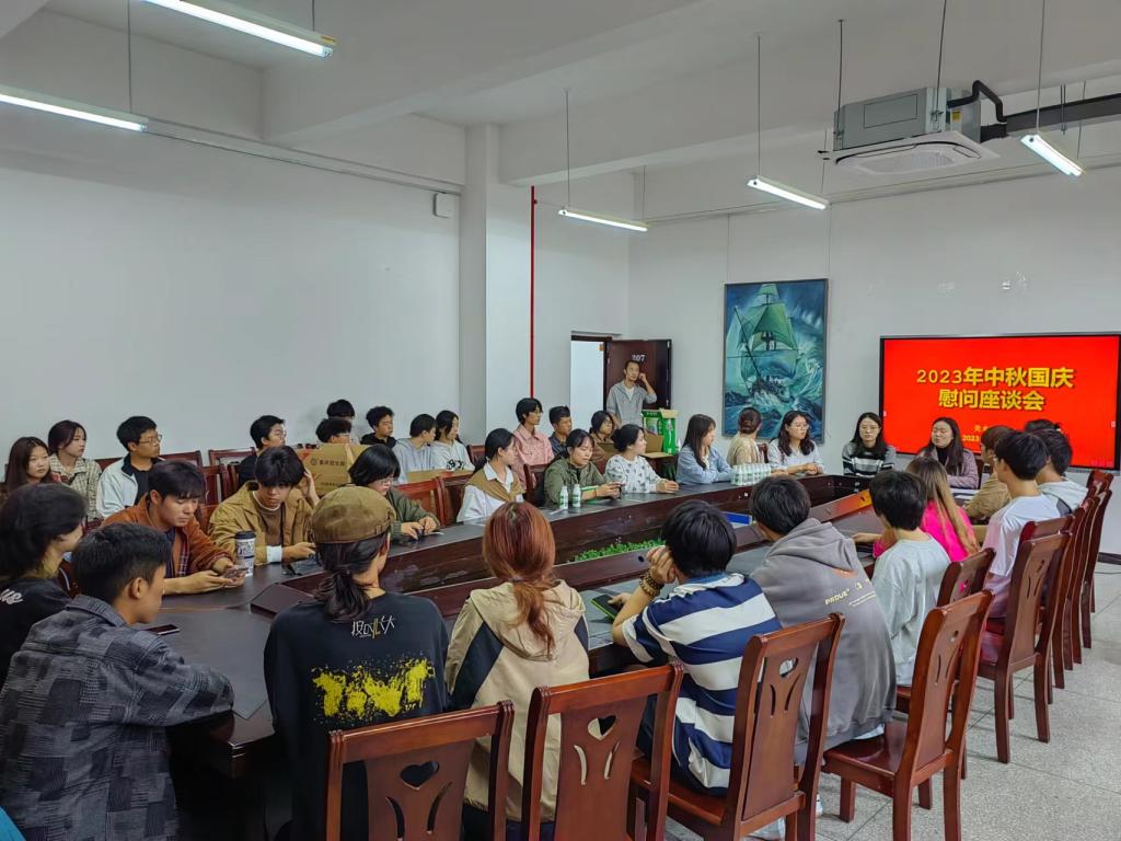 “中秋来临喜相逢,清风送爽意相从”,双节来临之际,为加强节前安全教育,拉近师生情谊,9月28日上午10:30太阳成tyc7111cc在博学楼5B207会议室召开2023年中秋国庆慰问座谈会,全体辅导员及各年级班级学生代表参加座谈会。
