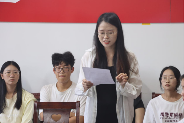 在培训会的互动环节中,2024级辅导员助理宋繁舸希望班委们勇于表达自我,善于沟通,并保持责任心,同时他也提到了班委应当公私分明,维护班级的公平公正。