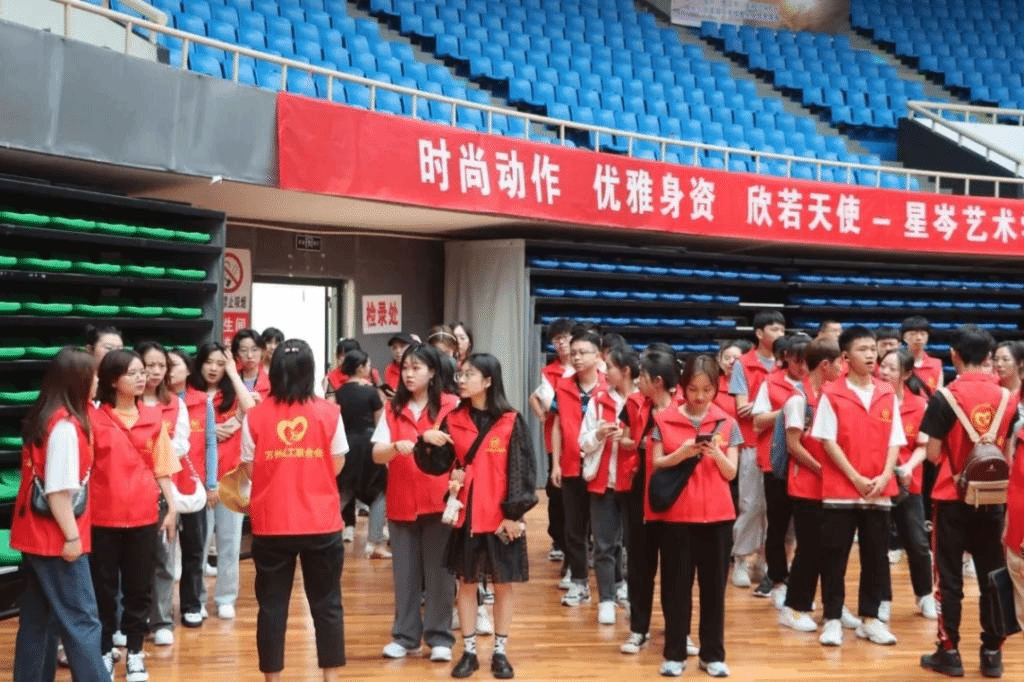 志愿者们在活动中分别负责安定赛场秩序、入场检录和礼仪等工作。大家相互配合,分组行动,一切工作井然有序地开展。志愿们饱含热情,认真负责;参赛者们风采奕奕,舞姿曼妙,赛场氛围激烈紧张。