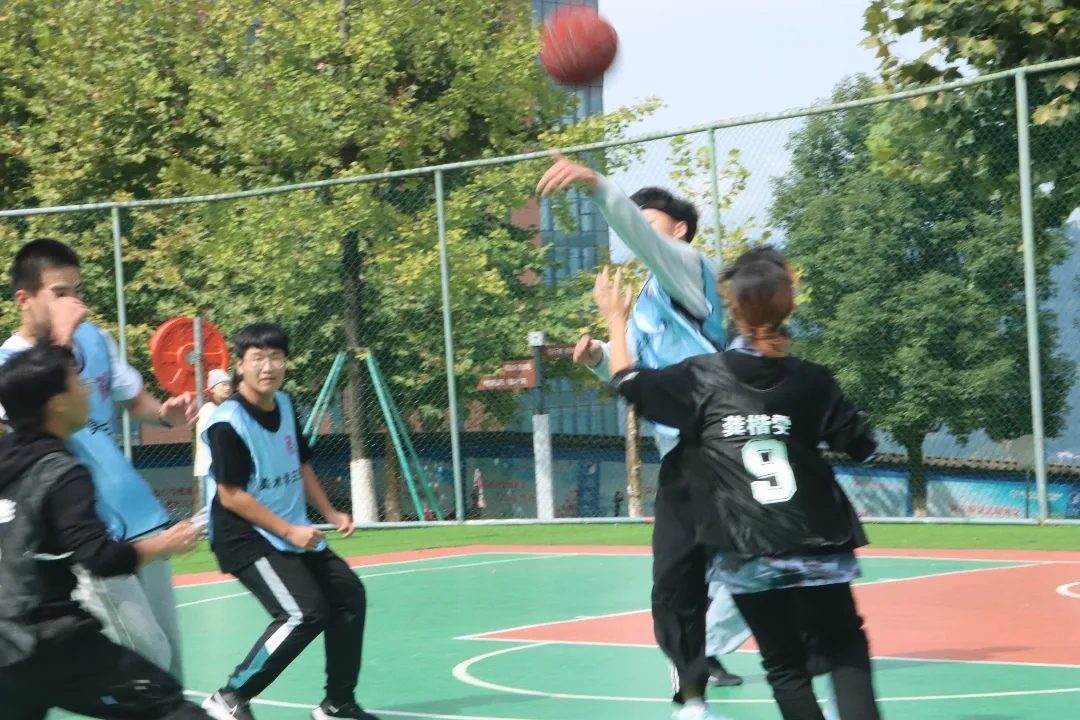 几丝秋风吹过,给参赛队员们带来了舒爽,赛场上的比分已逐渐拉开差距,但大家的求胜心依然没被磨灭,每个人都争分夺秒、拼尽全力想要抢下篮板。
