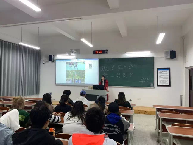 会议首先由团总支(学生)副书记毛铃然、何芳、主席团成员张箐倩、李宇涵、马齐骏上台对近期负责工作进行总结发言。然后刘荣君老师从部门成员工作积极性、办公室值班问题、通知传达速度三个方面展开反思。