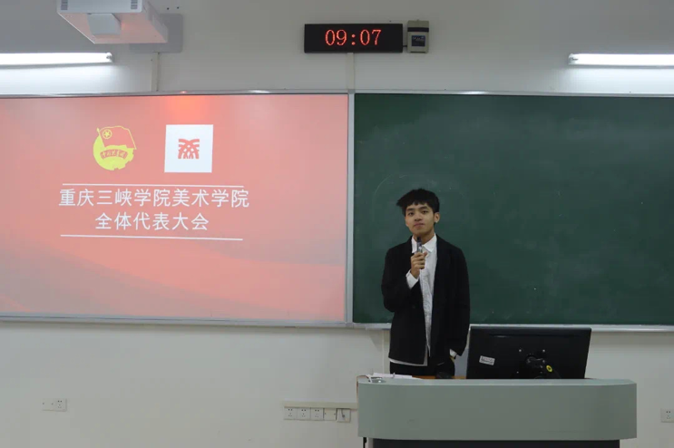 10月31号上午9点,重庆三峡学院太阳成tyc7111cc第七次学生代表大会在博学楼2栋顺利召开。参加此次会议的有院团总支学生会负责教师刘荣君老师,学生代表和团学工作人员55人参会。