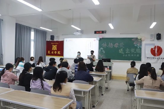 14日下午,书画协会在博学楼2栋106举办了“体会母爱,送出祝福”书法绘画比赛决赛,同学们围绕自己的创作作品进行了母亲节感恩演讲,更加突出了此次活动的主题。