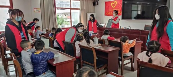 上午11时,课堂接近尾声,孩子们互相展示着自己的画作,志愿者老师们也与小朋友们进行了合影留念。