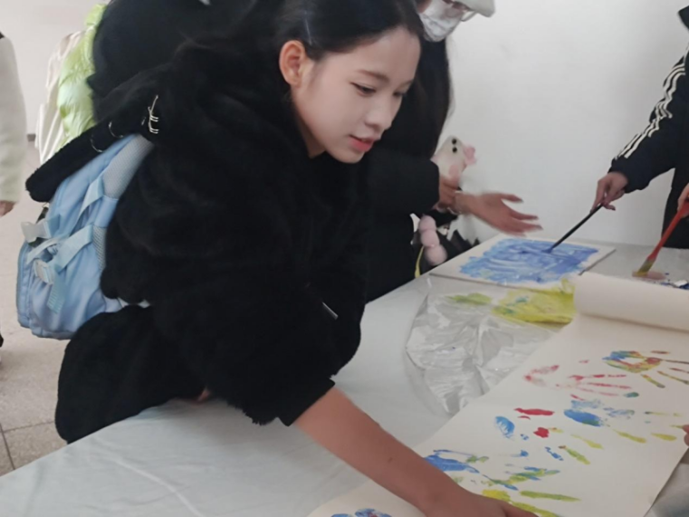 活动现场,同学们满怀好奇与期待,纷纷将手掌蘸上鲜艳的颜料,在画布上留下各自独特的掌印。这些掌印不仅是他们积极参与活动的见证,更是他们个性与创意的生动展现。同学们尽情发挥想象力,将原本单一的手掌印巧妙变幻成各式各样、丰富多彩的图案。每一幅作品都洋溢着蓬勃的生命力和不竭的创新精神。