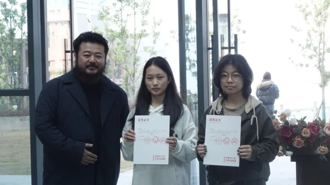 随后,王明国副院长宣读获奖名单,田锋书记、张宏伟院长为获得二等奖和三等奖的同学颁奖,陈腾龙先生为获得一等奖的同学颁奖。展览展出的作品有中国画、油画、版画、雕塑、数字艺术等类型,题材丰富、形式多样,展现美院学子扎实的功底与活跃的思维。