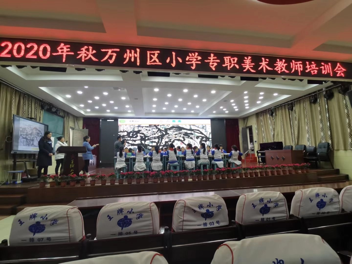 2020年11月27日星期五,关于召开2020年秋万州区小学专职美术教师培训会在万州区王牌小学(王牌校区)多功能厅举行,培训会的主要内容为美术教师讲课、说课与评课、布置小学美术研训工作以及专家柳景琼老师专业的教师建议让我们受益良多。其中的观摩课:三年级上册第三课《方方圆圆》,让我们领悟到我国国学的魅力,美术教师用中国画表现动物的不同画法,以及笔墨浓淡干湿的教学,让学生们沉浸在中华文明的世界中,让我们对我国文化自信的意志更加坚定。