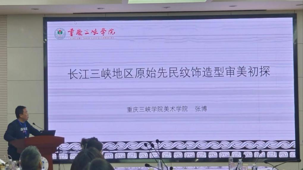 分论坛会上,我院教师张博作了题为《长江三峡地区原始先民纹饰造型审美初探》的发言;研究生苗慧作了题为《三峡地区民间艺术在文创产品中的应用——青铜器纹饰与铜胎掐丝珐琅的转化与再生》的发言。