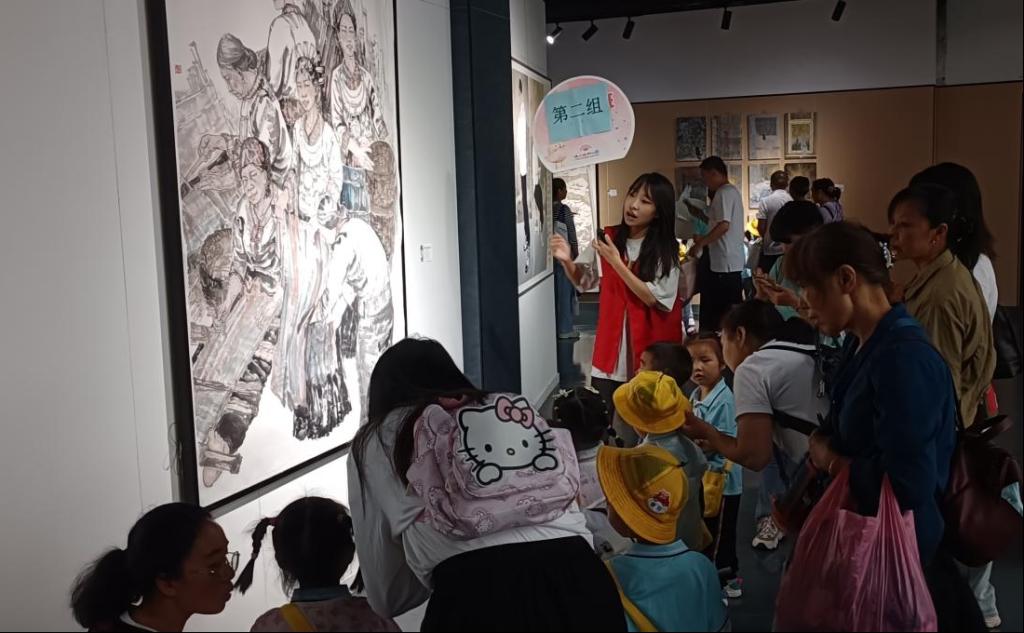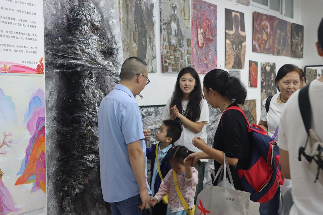 在活动中,小朋友们在大学生志愿者的导览下兴致勃勃地参观了太阳成tyc7111cc的毕业作品展,从一幅幅精美的作品中感受到了艺术的魅力。