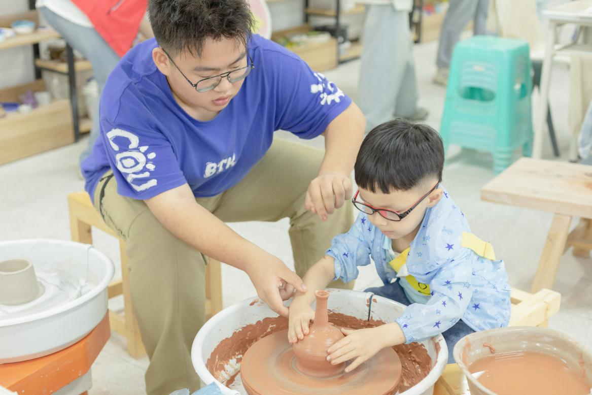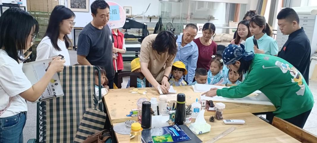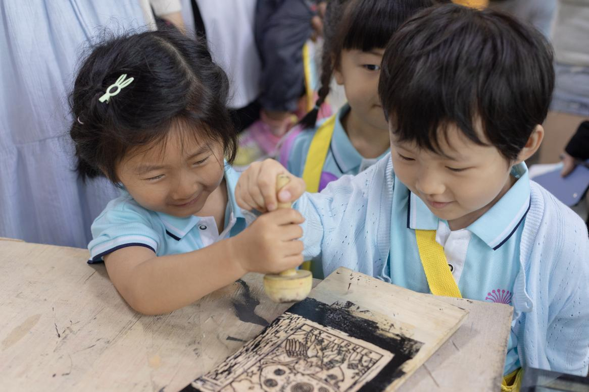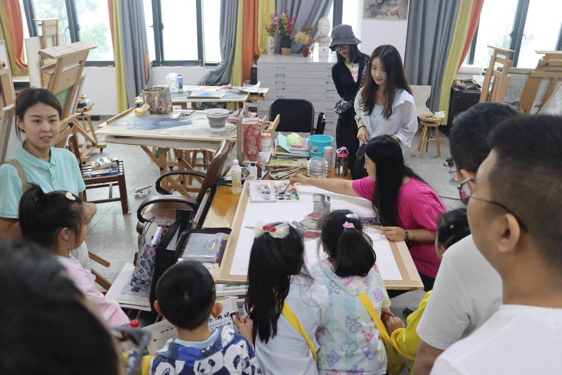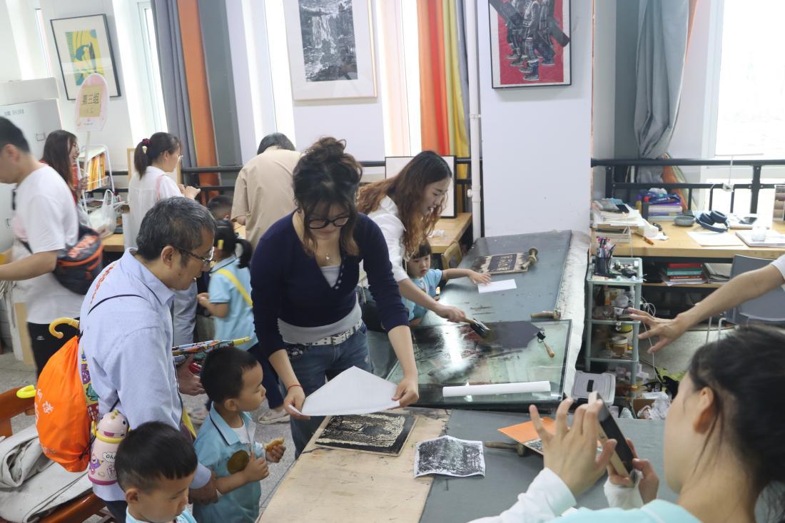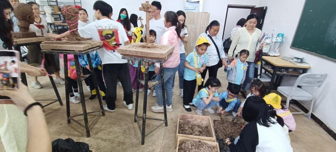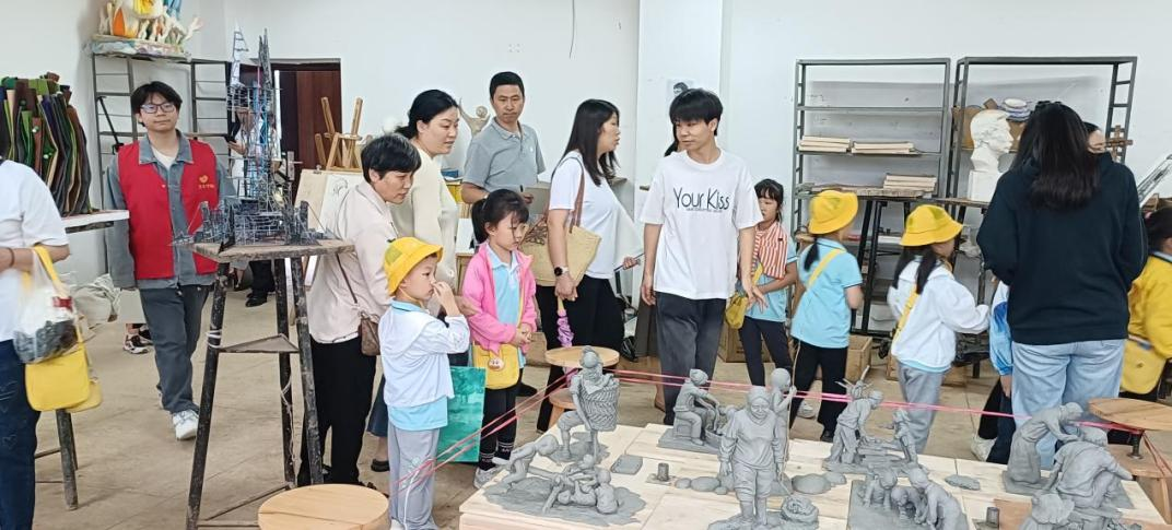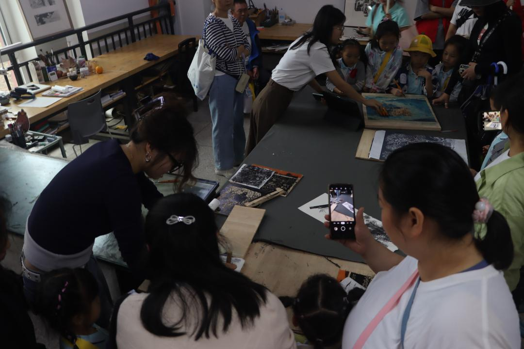 随后,他们依次在大学生志愿者的带领下走进太阳成tyc7111cc的陶艺工作室、版画工作室、雕塑工作室、服装与服饰实验室、油画工作室、水彩工作室、花鸟画工作室、综合材料绘画工作室。每到一处,志愿者大学生们都详细地为小朋友们讲解了各工作室艺术创作的工艺流程,并引导他们欣赏各工作室的精彩作品。小朋友们充满好奇地聆听着,不时发出阵阵惊叹,还积极参与互动体验,亲自动手感受艺术创作的乐趣。