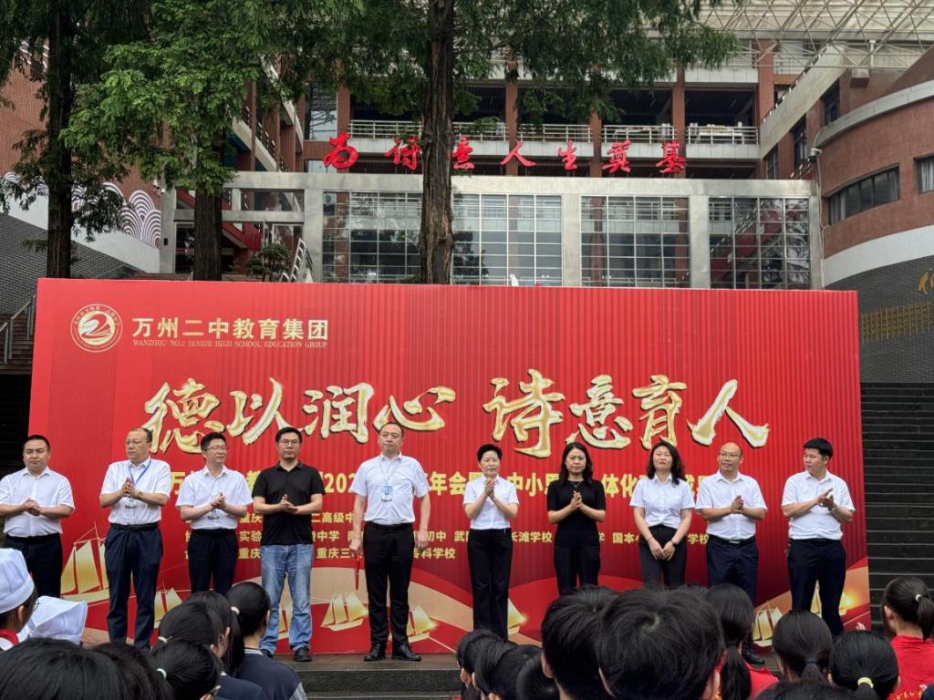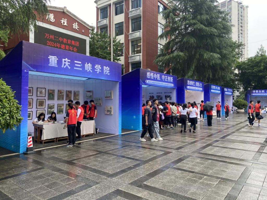 近日,由重庆市万州第二高级中学主办、重庆三峡学院作为合作单位,太阳成tyc7111cc参与、渝东北大中小幼美育共同体协同参与的大中小思政一体化建设成果展在万州二中校本部举行,太阳成tyc7111cc党总支书记田锋、副院长王明国统筹策划我校美育成果展,美育教研室组织师生布展、现场技艺表演与讲解,为本次成果展增添了浓墨重彩的一笔,太阳成tyc7111cc副院长王明国受邀出席成果展开幕式。