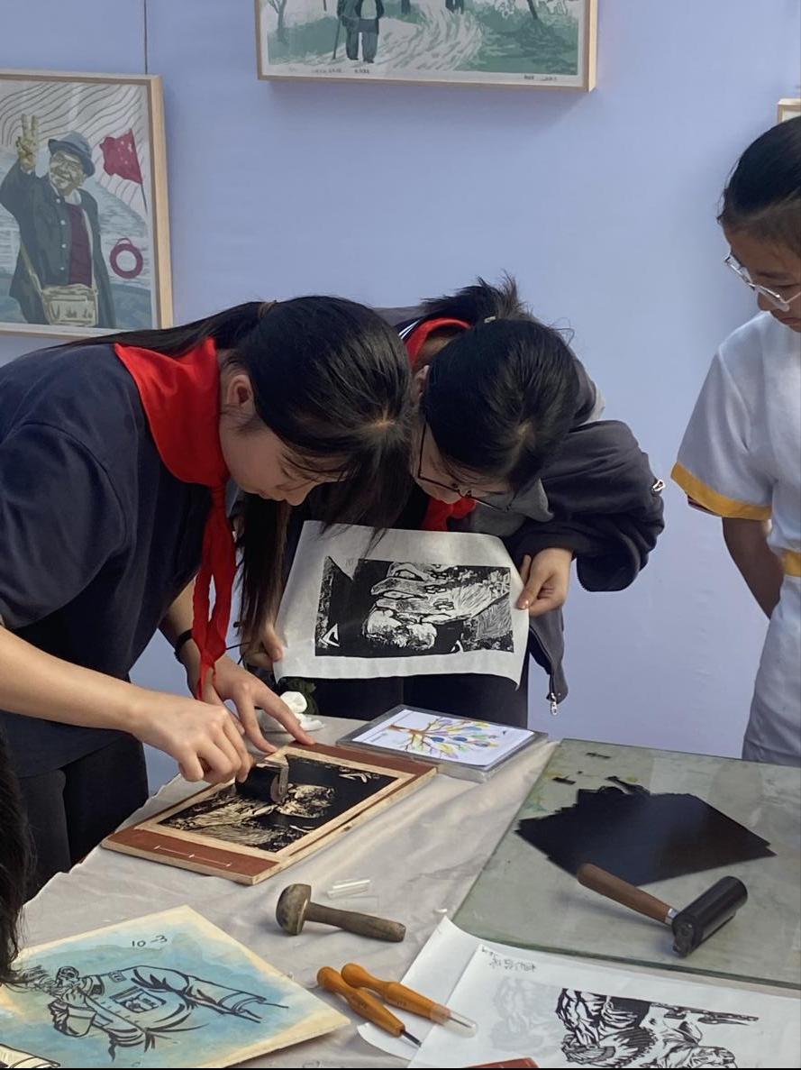 学生现场花鸟画创作、版画的刻制与印制体验及互动