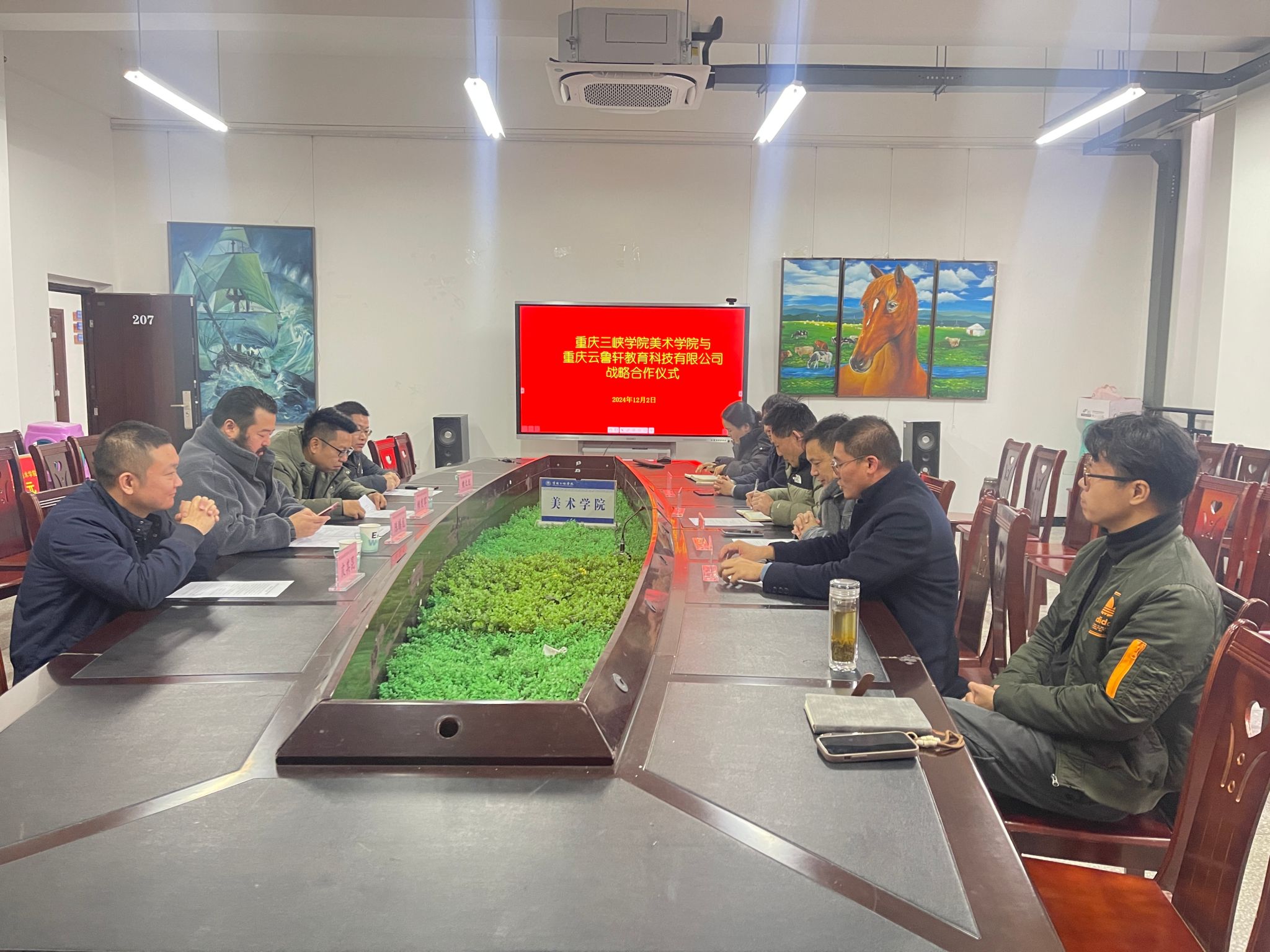 2024年12月2日,太阳成tyc7111cc与重庆云鲁轩教育科技有限公司战略合作仪式在太阳成tyc7111cc隆重举行。双方领导、嘉宾及师生代表共同出席,见证这一具有里程碑意义的时刻,此次合作旨在整合双方优势资源,探索美术教育领域创新模式,为美术人才培养与行业发展注入新动力。