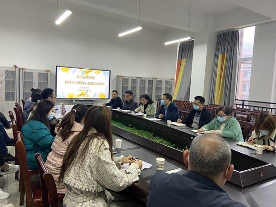 第二阶段各学院进行研讨交流,学生处负责人任江林介绍了我校学生心理健康教育中心的运行情况,二级学院心理健康教育工作站建设注意事项,心理健康教育中心改造升级等情况。