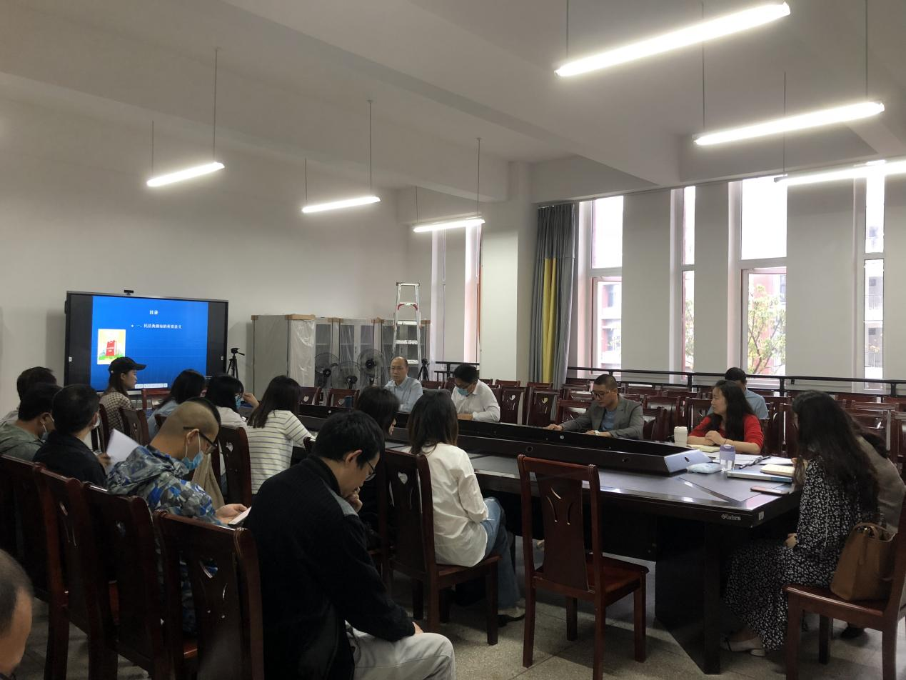 2022年4月28日上午,太阳成tyc7111cc在博学楼5B207会议室召开全体教职工大会,特邀学校公共管理学院副院长、重庆市法学会理事、重庆市普通本科高等学校法学类专业教学指导委员会委员、重庆市万州区党政机关法律顾问团成员、重庆市人民检察院第二分院咨询专家秦祖伟教授作题为“民法典的中国特色、实践特色、时代特色”的讲座。会议由学院党总支书记赵翔宇教授主持。