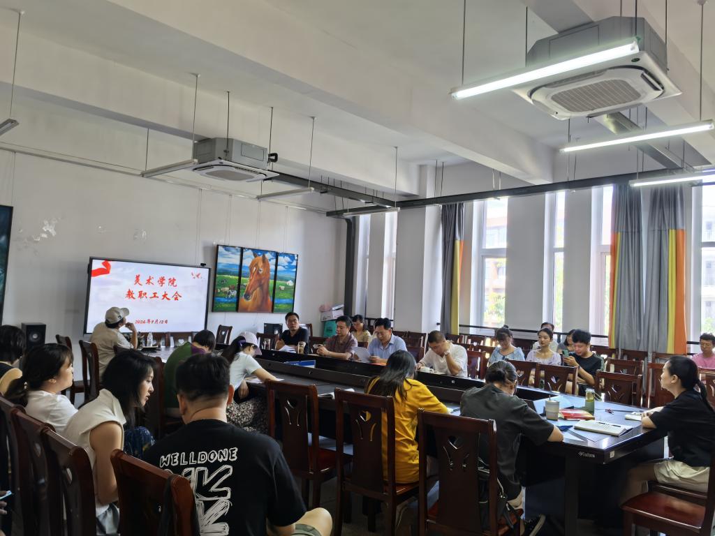 张宏伟院长通报了暑假期间教师作品入选全国美展、大广赛获奖等喜报,以及图形工作站建设进程等。他指出必须向应届毕业生强调申请提前离校的规定和责任,按规定严格执行;谈到关于职称评审今年新旧文件均适用,符合条件的老师应做好相关材料准备;希望教职工积极参与9月20日前往城口开展的主题党日活动。