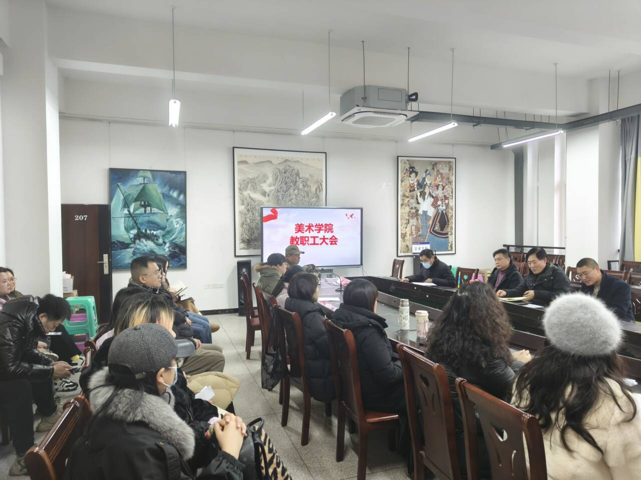 田锋书记传达了学校意识形态研判会和安全稳定工作会精神,强调全体教职工在日常生活中,要时刻保持警觉,遵守安全规定,不忽视任何一个小细节;积极参与学校组织的安全培训,将理论知识转化为实际操作能力,提升个人安全意识,共同营造一个安全、和谐的环境。最后,办公室陈小宇主任对2024年年终绩效发放名目进行解释以及对学院公共事务修订相关情况进行说明。